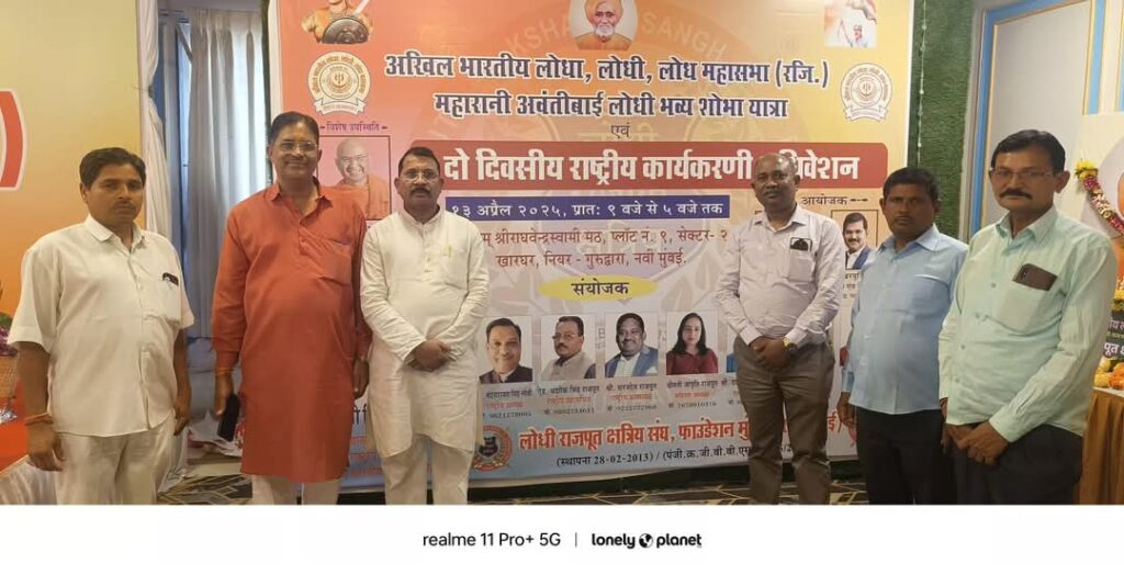 भारत की आर्थिक राजधानी मुंबई के खारघर क्षेत्र में दिनांक 12 व 13 अप्रैल को अखिल भारतीय लोधा, लोधी, लोधी महासभा द्वारा भव्य महारानी अवंती बाई लोधी शोभा यात्रा एवं राष्ट्रीय कार्यकारिणी अधिवेशन का आयोजन किया गया। इस आयोजन में देशभर से लोधी समाज के प्रमुख पदाधिकारी शामिल हुए, जिसमें छत्तीसगढ़ से आए प्रतिनिधियों ने भी सक्रिय सहभागिता दर्ज की।