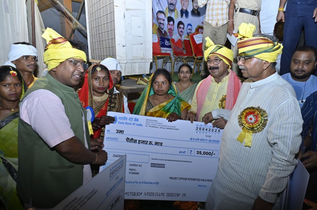 छत्तीसगढ़ के मुंगेली जिले में आदिवासी समाज ने विवाह संस्कार को सरल और खर्चमुक्त बनाने की दिशा में एक अनुकरणीय पहल करते हुए “आदर्श गोंडवाना सामूहिक विवाह कार्यक्रम” का भव्य आयोजन किया। इस अवसर पर समाज ने दिखावे और फिजूलखर्ची से परे, रीति-रिवाजों के अनुसार 31 जोड़ों का विवाह सम्पन्न कर एक नई मिसाल पेश की।