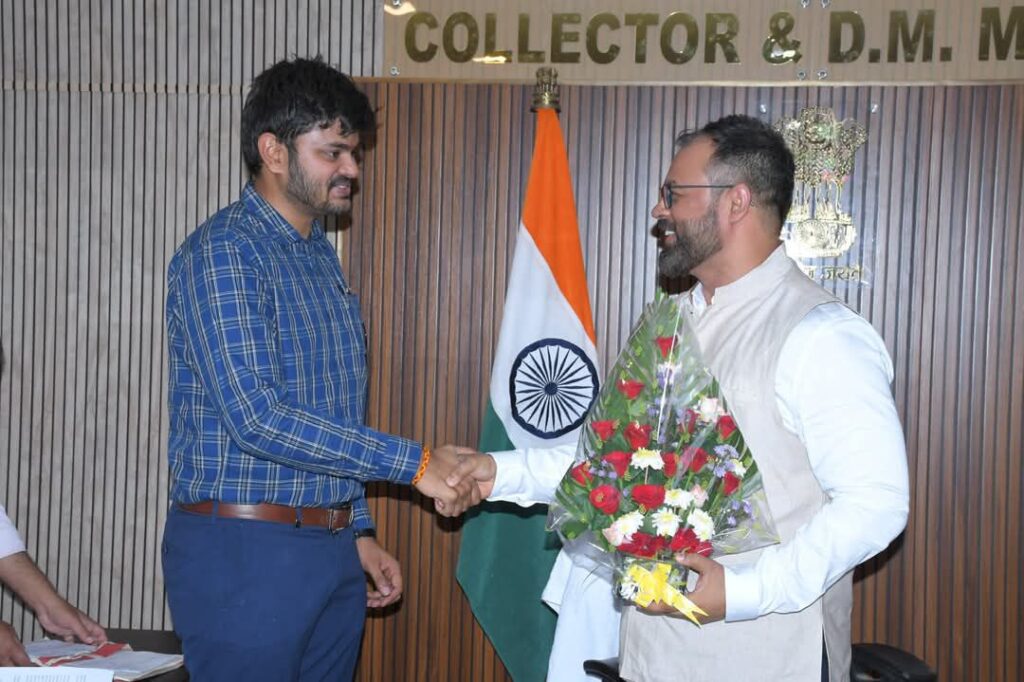 नवपदस्थ कलेक्टर श्री कुंदन कुमार को निवर्तमान कलेक्टर श्री राहुल देव ने पुष्पगुच्छ भेंट कर शुभकामनाएँ दीं और औपचारिक रूप से पदभार सौंपा।